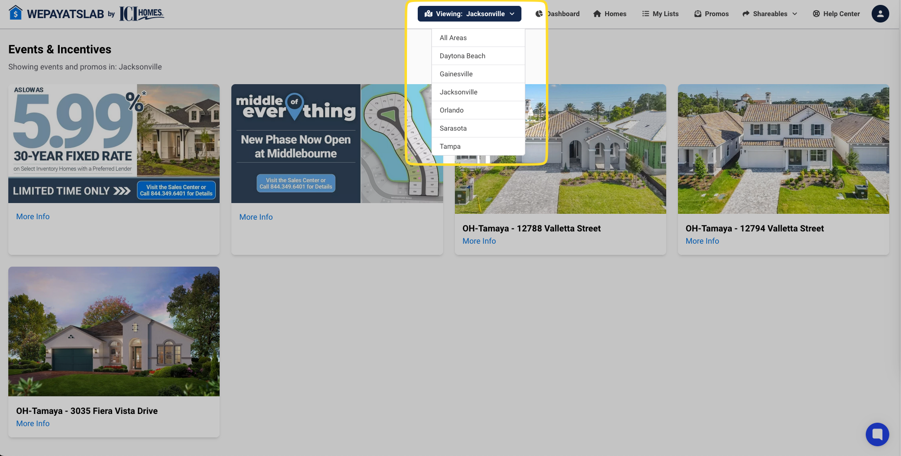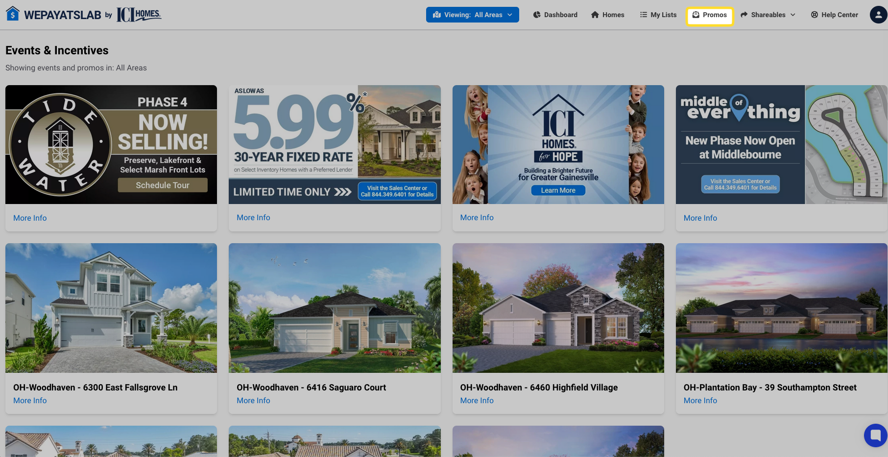 Find the "Promos" section in the navigation menu. This is your go-to spot for all the latest incentives, events, and open houses in your area.