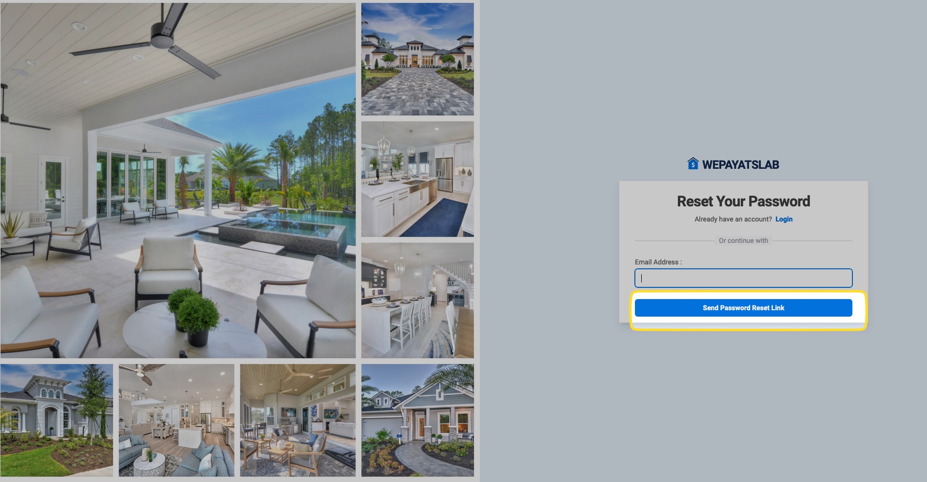 Click "Send Password Reset Link".